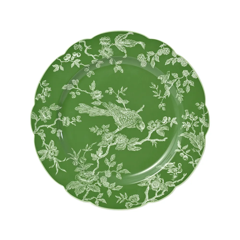 Cette assiette à dessert offre un fond vert apaisant où danse une végétation minutieusement illustrée. Le motif raffiné rappelle les décors classiques revisités avec grâce. Idéale pour accompagner un goûter élégant ou conclure un repas en beauté.