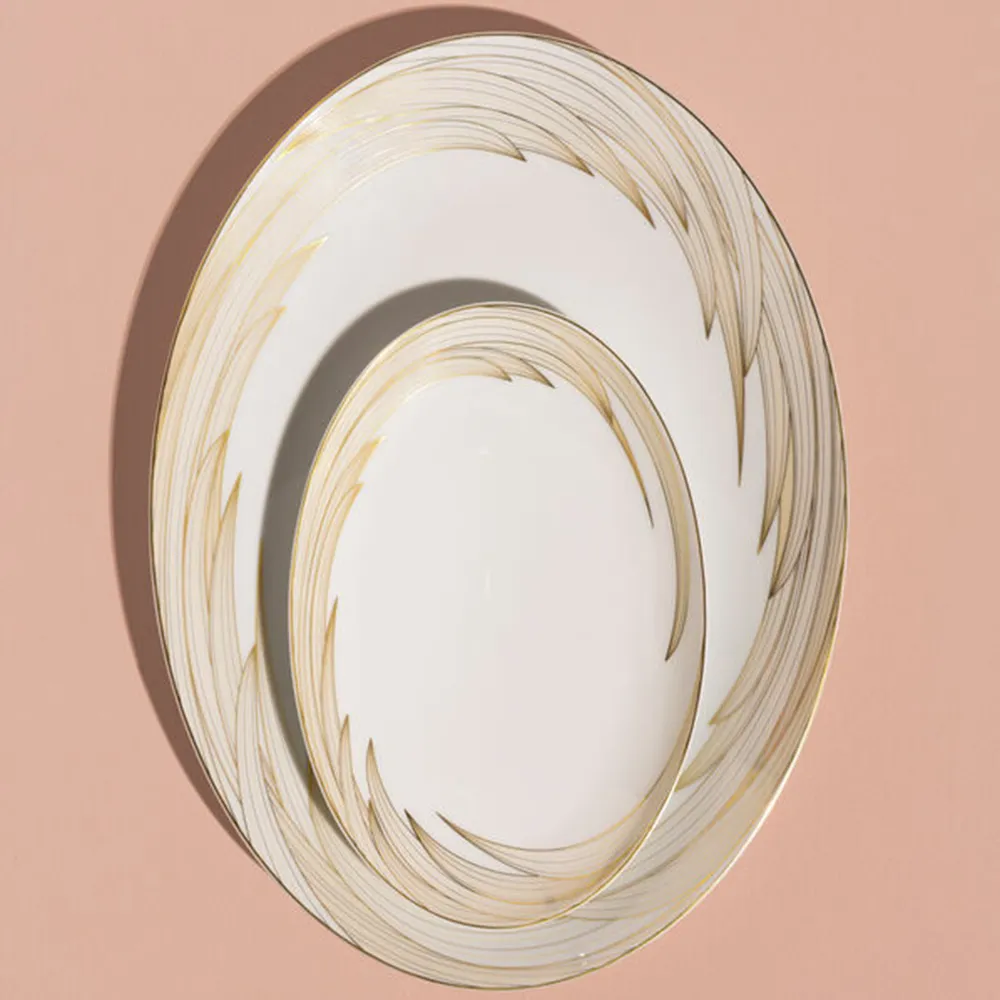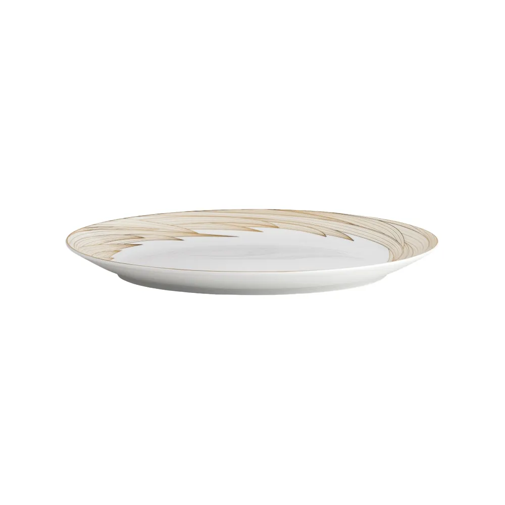 Le plat ovale Phénix 36 cm offre une surface majestueuse pour sublimer poissons, viandes ou compositions festives. Son décor doré, vibrant et graphique, en fait une pièce maîtresse de la table.