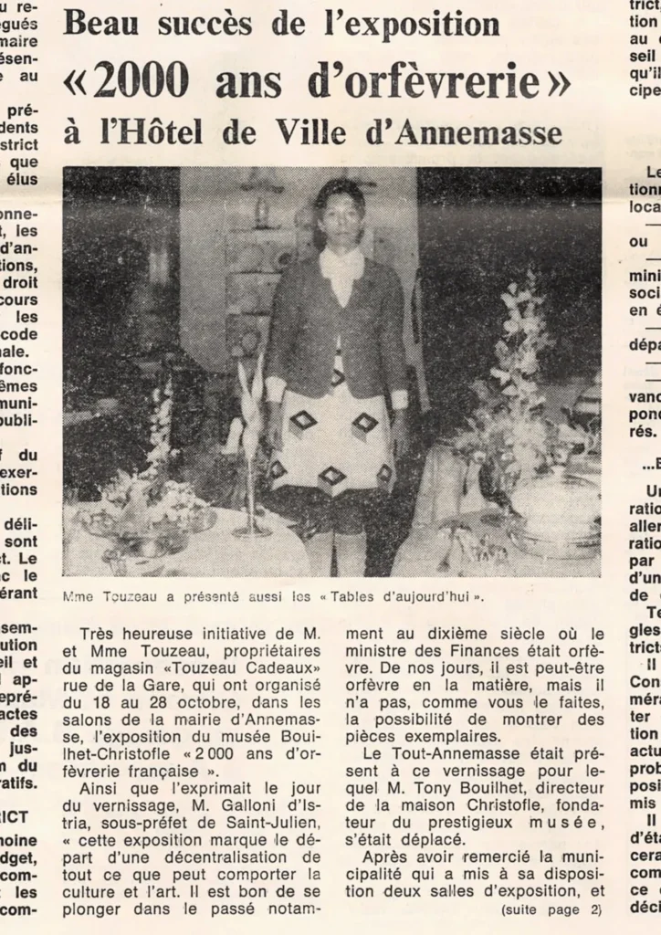 In October 1973, an article in the newspaper Le Progrès highlighted an exceptional cultural initiative by Mr and Mrs Touzeau, then owners of the Touzeau Cadeaux shop in Annemasse.