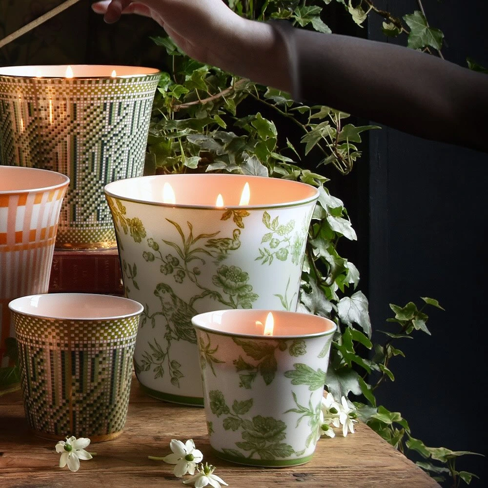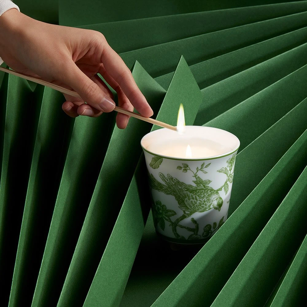 With its delicate Albertine décor, this small porcelain candle jar is distinguished by its refinement and versatility. It comes with a scented candle designed by talented perfumer Olivia Giacobetti, from an exclusive assortment of six fragrances created for Bernardaud. Burning for around 50 hours, this candle is an invitation to a truly sensory experience. Once burnt, the porcelain timbale lives on: it can easily be transformed into a small vase, pencil pot, tumbler or other everyday decorative object. A beautiful object to give as a gift or as a present, combining fragrance, art of living and porcelain-making expertise.