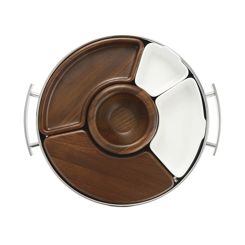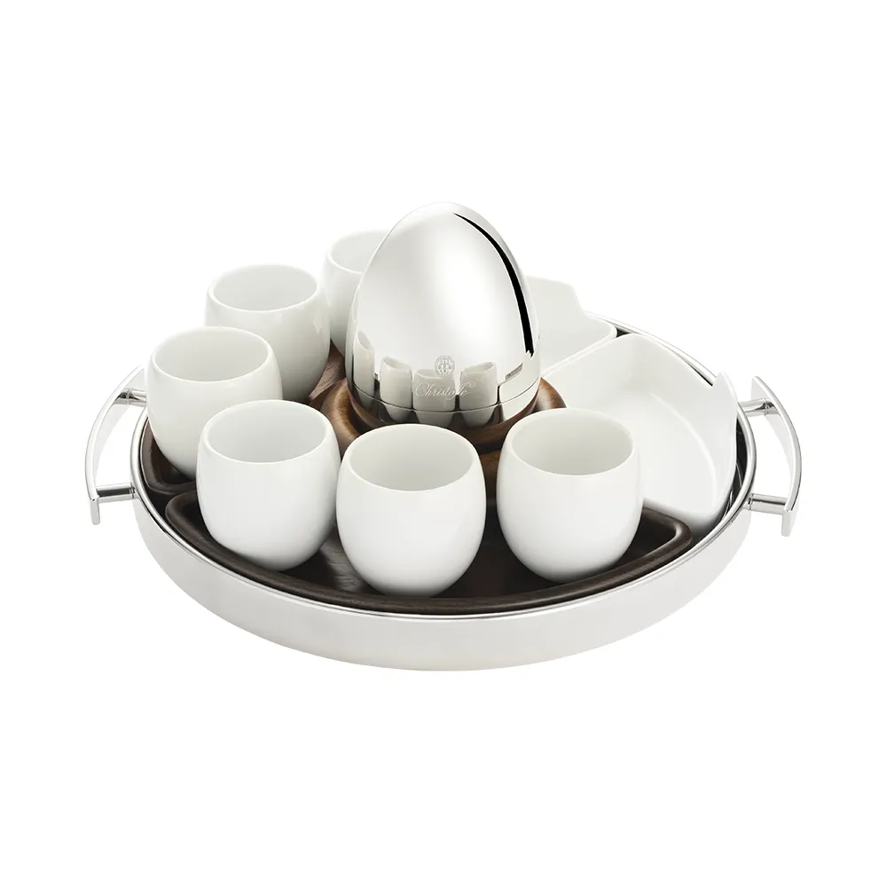 Designed to enhance the coffee experience, the MOOD Coffee tray combines elegance and practicality. Its compact size accommodates up to 6 espresso cups and features walnut wood and white porcelain containers, perfect for your sweet or savoury treats. Designed to match the MOOD Coffee set, it is compatible with the Classic or Precious versions, for even more refined service. Ideal for everyday use as well as for entertaining, this tray becomes a real object of contemporary conviviality.