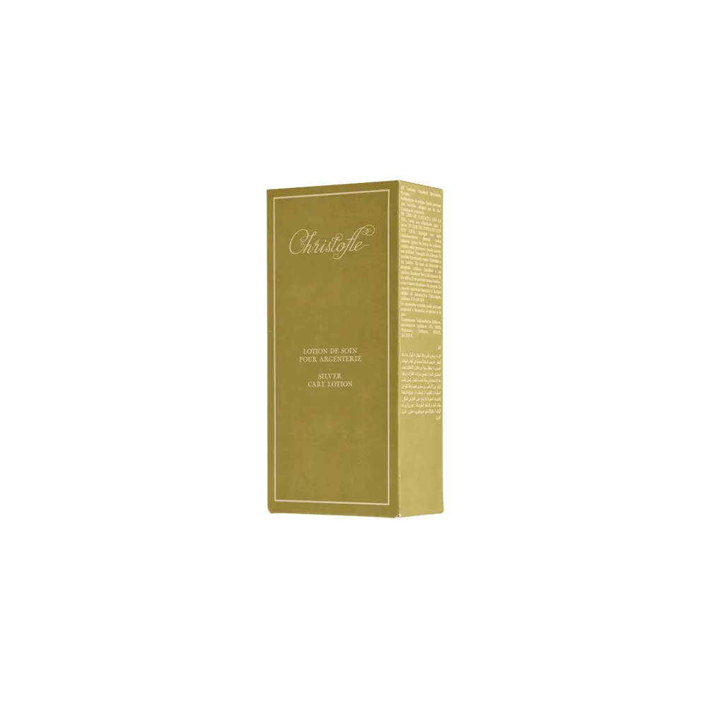 Christofle's care lotion is the perfect solution for maintaining your goldsmith's and silversmith's pieces. Thanks to its innovative formula with a pleasant fragrance, it removes the layer of oxidation in a single step, polishing your pieces and restoring their brilliant shine. It also provides long-lasting protection that slows the appearance of oxidation. Easy to use, it's ideal for regular, effective maintenance of your silverware, without damaging it.