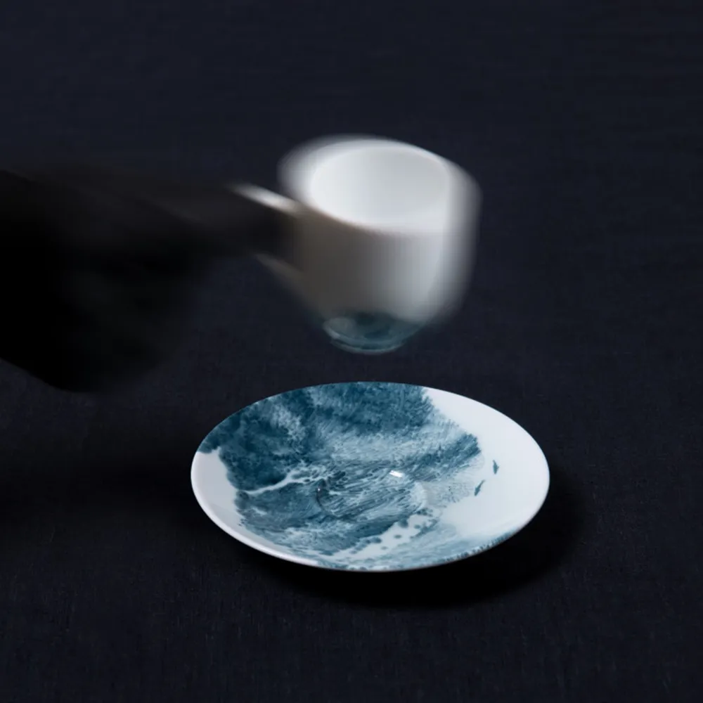 L’ensemble tasse et soucoupe à café Abysses transforme chaque pause café en moment d’exception. Le décor bleu indigo, inspiré des fonds marins, contraste avec la blancheur de la porcelaine et apporte une élégance poétique à la table.